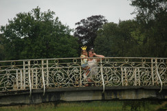 De dag nadien wou ze meer weten over scherptediepte... ik stuurde haar dus op pad bij de buren om foto's te nemen van de bloemen en andere dingen die ze daar zag, en ook met een levensechte grote pop die ze als model kon gebruiken, en zei dat ze helemaal moet inzoomen en zo kort mogelijk moest gaan staan, en natuurlijk blijven scherpstellen op wat ze scherp wilde hebben; en dat ze dan wel zou zien dat de foto's meteen veel interessanter zouden worden...